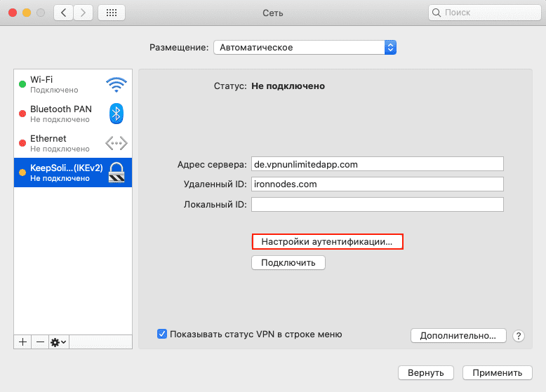 Как я могу подключиться к VPN-серверу по IKEv2 на macOS?