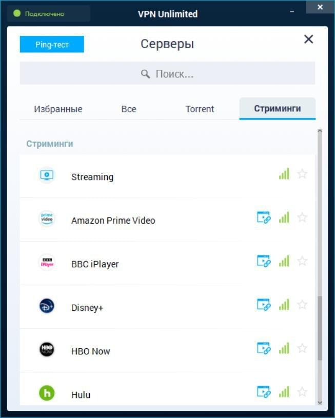 - Стриминги: Тут находятся VPN серверы, которые предназначены для потоковой передачи данных.