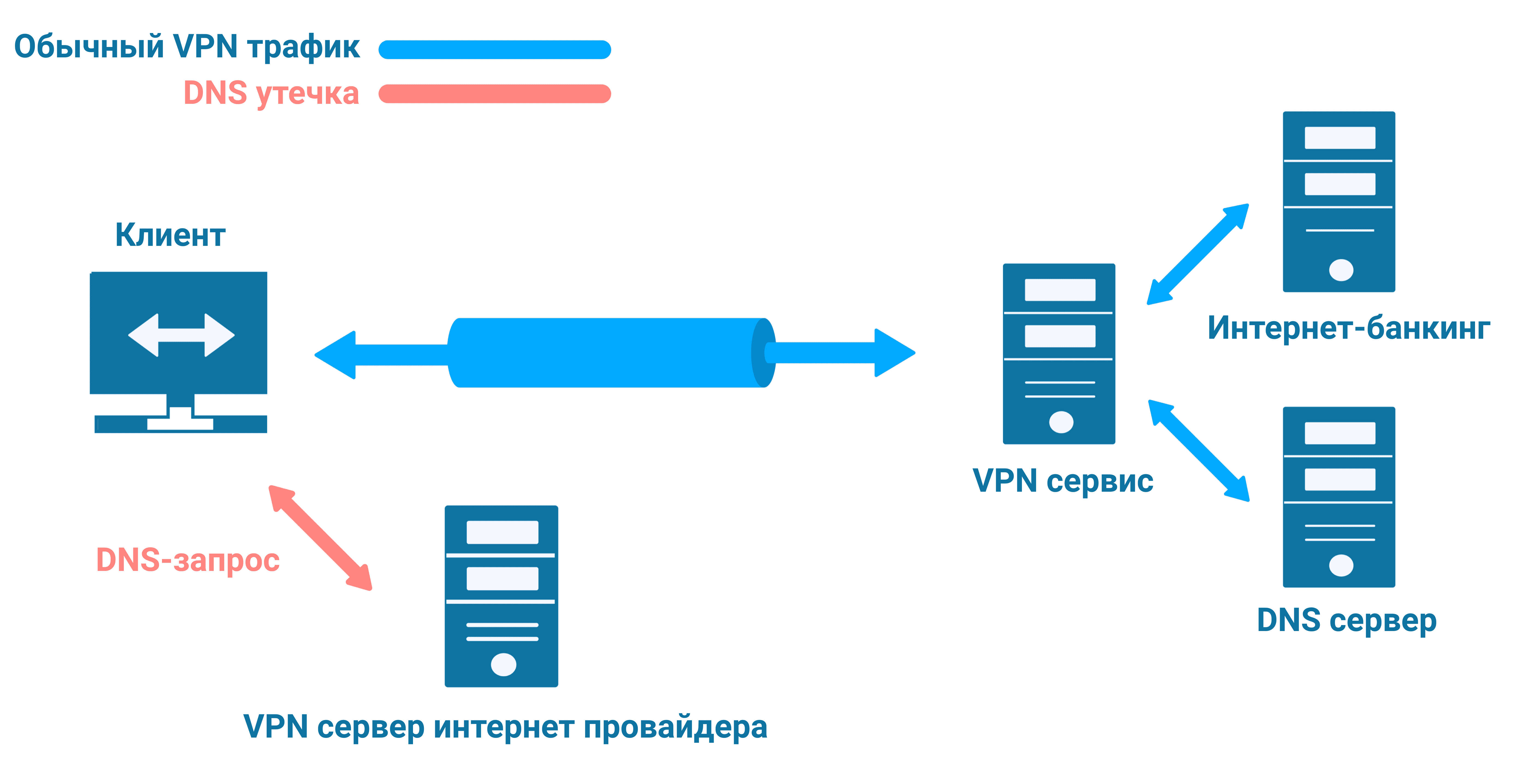 DNS (Domain Name System) преобразует доменные имена в IP адреса. Ваш браузер обращается к DNS серверу, который получает IP адрес введенного вами URL и отправляет его обратно. Обычно, если вы не используете VPN, запросы DNS отправляются непосредственно на DNS серверы вашего интернет-провайдера. Это означает, что интернет провайдер и любой другой, кто перехватывает ваш трафик, сможет видеть все сервисы и сайты, к которым вы подключаетесь. Это само по себе является потенциальной утечкой DNS. Однако даже при использовании VPN, которого обычно достаточно для кодирования и защиты вашей информации DNS, утечка все еще возможна. В определенных ситуациях запросы DNS могут по-прежнему отправляться на сервер провайдера без защиты. В таких случаях VPN не может защитить ваши DNS запросы, что приводит к DNS утечке. Проверьте, насколько безопасен ваш DNS адрес.